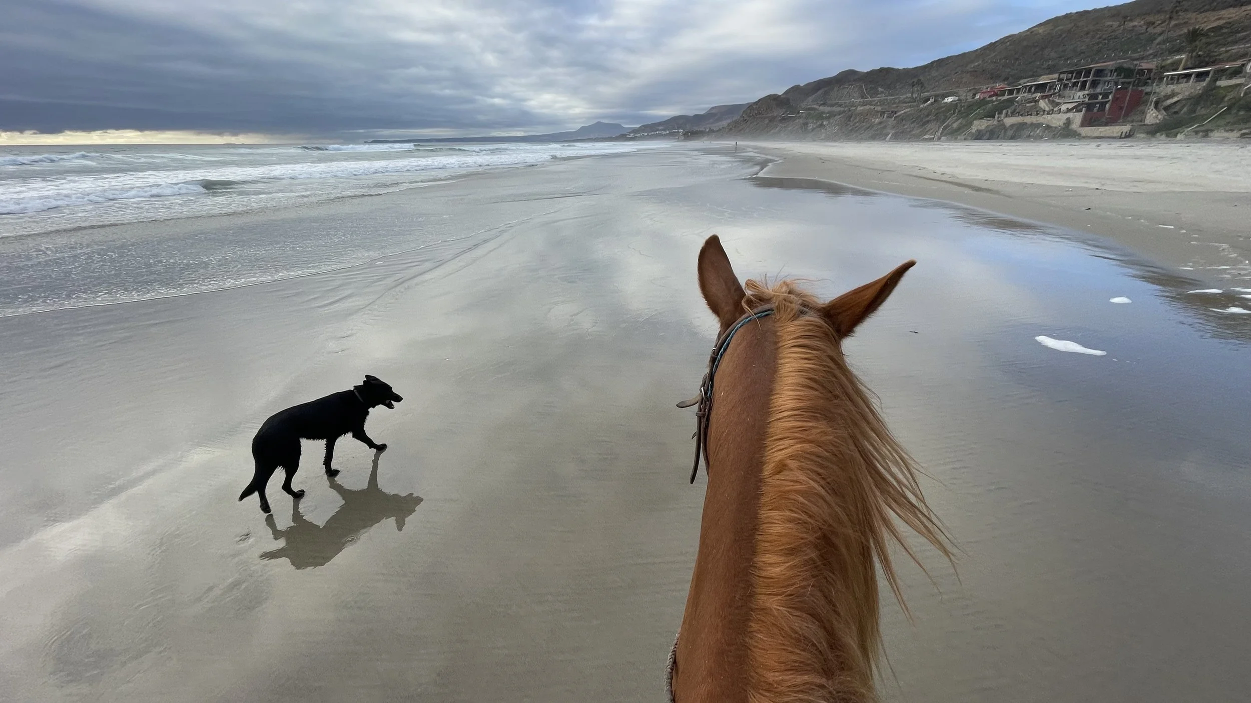 Yesterday I took Alegria for a ride along the beach. Pacas came with us—because why would she stay behind if there’s a ride happening?