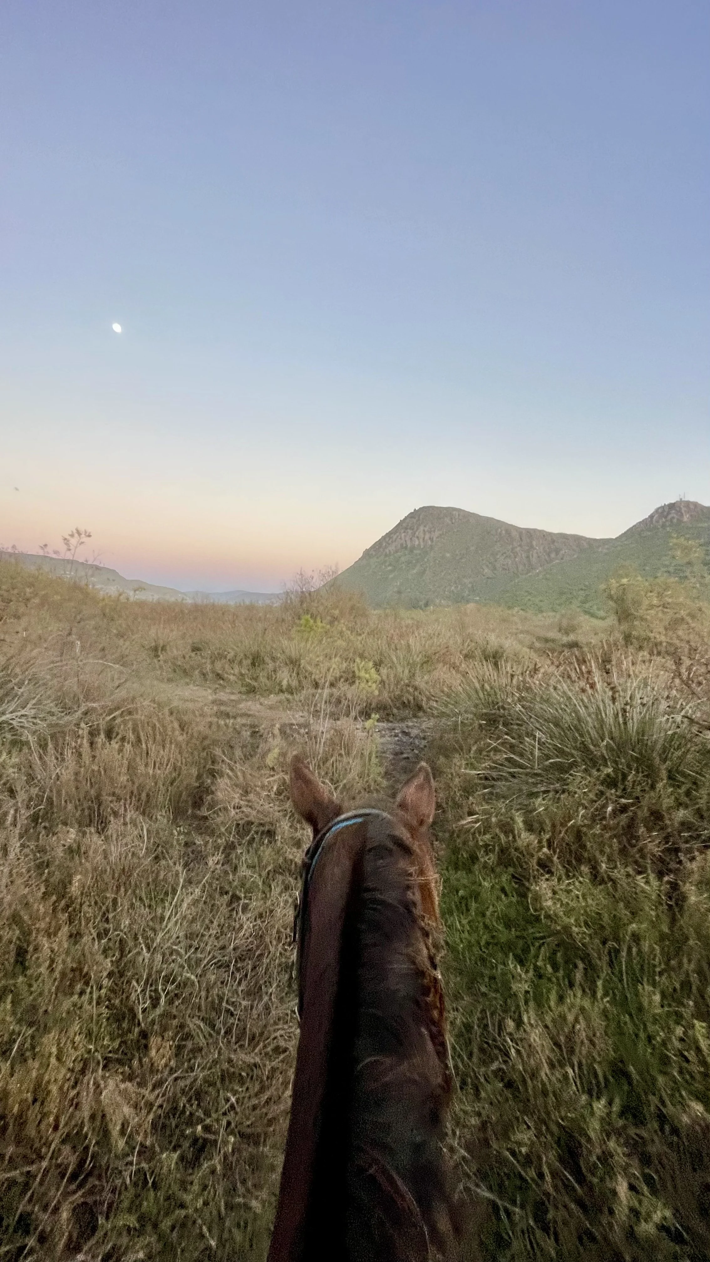 But I knew she still had a lot of pent-up energy, and we have a big cabalgata (an all-day ride) coming up with steep inclines. I figured that actually going out for a short trail ride before the sun set would be the best thing for her fitness and for our work together come the day of the cabalgata.