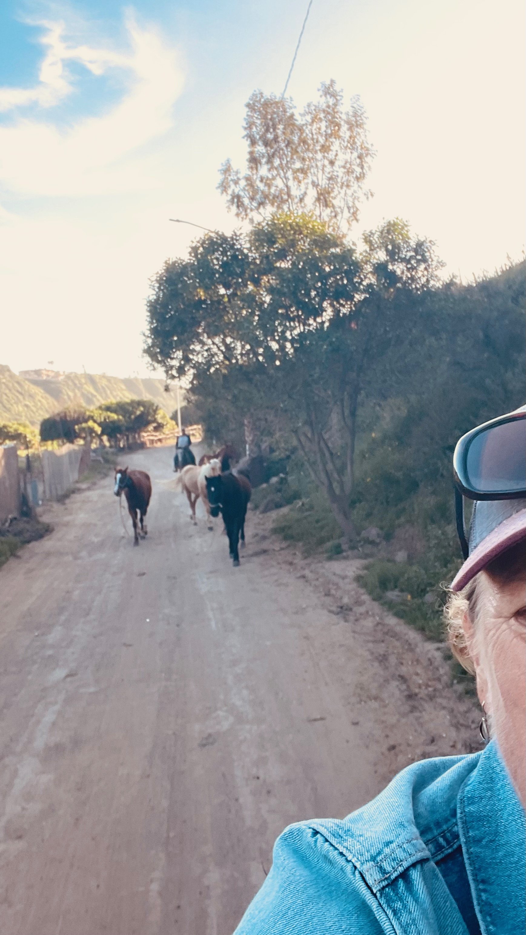 I turned Fortuna around and called to the others: "Come on guys, time to go back." With Señor Sol leading the way, the herd began to follow us back toward the ranch. Suddenly, one of the older horses caught a spark of "going home" energy and broke into a run. The others immediately caught the fire.